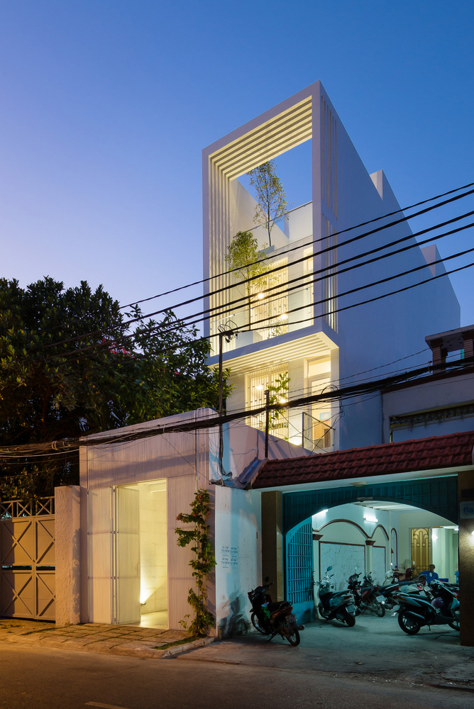 越南也有一些极为简约时髦的自宅设计,这座蚕茧一样的小楼来自伦敦建筑事务所 Landmak Architecture,外观看起来仿佛被精美的蕾丝包裹。