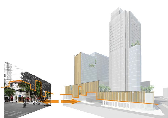 近年来,也有很多世界级的建筑大师在越南进行国际化项目,在这一类建筑中,如何将现代的高大建筑与越南的城市结合,是一个重要课题。西贡中心(Saigon Center)是胡志明市内新建的现代综合建筑体,它就是一个很好地解决这个难题的案例。