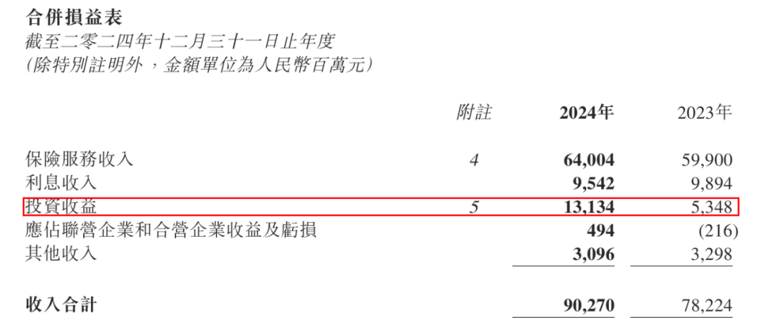 年报显示,2024年阳光保险投资收益收入为131.3亿元,同比大幅增长145.6%,主要源于资本利得、利息和股息收入的增长。