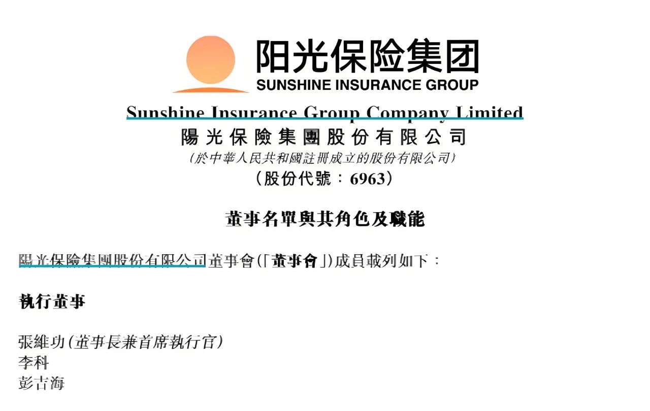 3月26日,阳光保险发布公告称,公司于当日收到执行董事赵宗仁及王永文的辞呈。由于年龄原因,赵宗仁向董事会提出辞任公司执行董事、副董事长职务,王永文向董事会提出辞任公司执行董事、董事会风险管理委员会委员及主任委员职务。