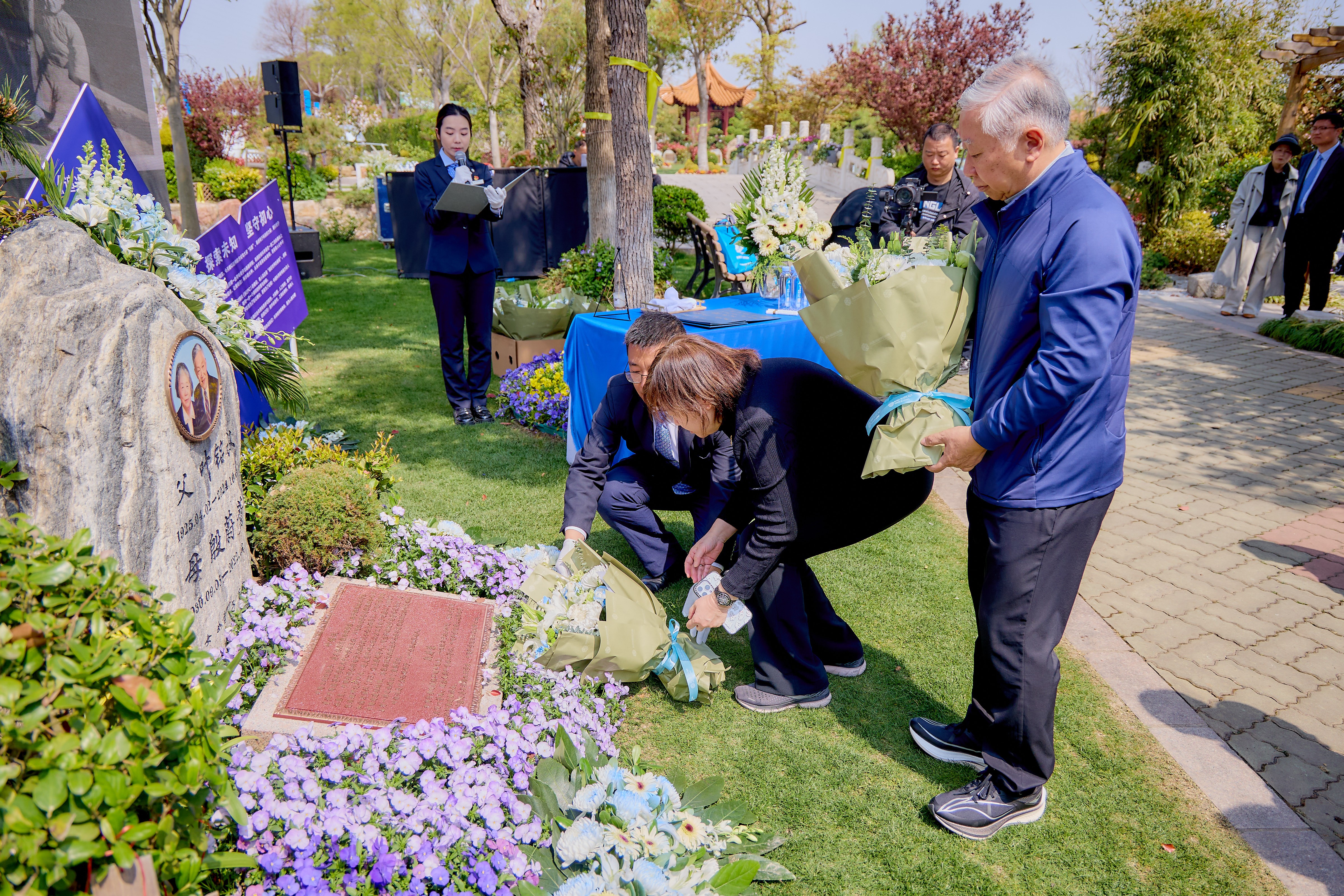 全体亲友及来宾依次向叶铭汉院士的墓碑献花。鲜花寄托着大家对叶院士的无尽哀思与崇高敬意,也象征着他的精神将永远被铭记,激励着更多后人投身科学研究,为实现科技强国的目标奋勇前行。