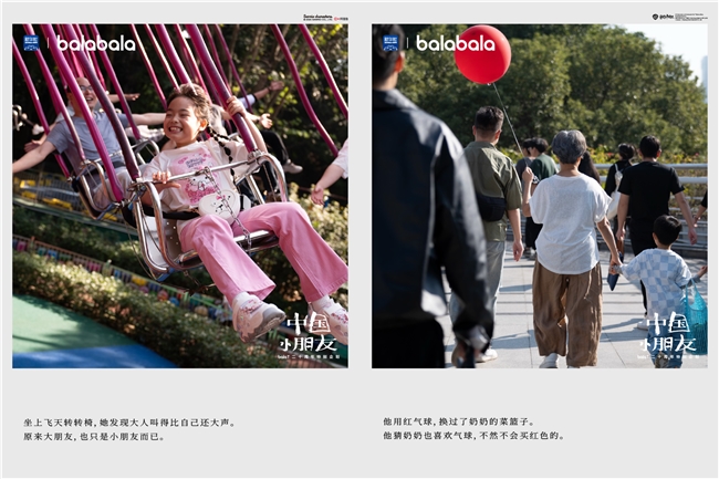 早在2006年,巴拉巴拉便以行业先行者姿态登陆央视,成为中国首个在国家级媒体投放广告的儿童服装品牌,以“公信力”重塑行业认知。23年来,这种基因持续进化:2024年与新华社联合出品《中国小朋友》,将balaT二十年来对于童年、对于成长、对于陪伴的贴身观察凝聚成一条故事片,将对儿童成长的洞察升华为国民级文化议题,全网话题曝光量超5亿+,再次验证巴拉巴拉“不仅是商业品牌,更是时代记录者”的独特定位。