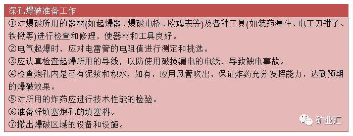 深孔爆破能否顺利进行及爆破效果的好坏,与爆破前的准备工作有着密切的关系,因此,在深孔爆破前必须做好准备工作。