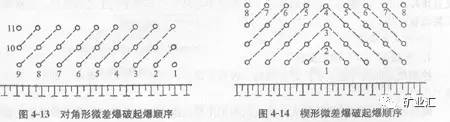 ④对角形微差爆破起爆顺序