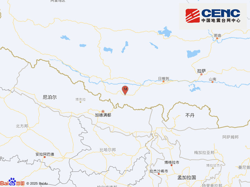 中国地震台网正式测定:04月10日13时12分在西藏日喀则市定日县(北纬28.67度,东经86.62度)发生3.1级地震,震源深度10千米。