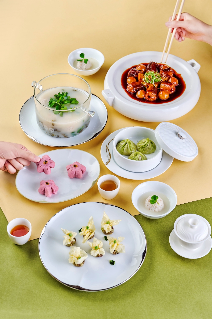 3月,上海外滩瑞吉酒店天宝中餐厅推出春季菜单,以“以馔为笔,摹尽江南三月画”为主题,将春季的灵韵与美食的精妙融合,为食客带来一场味觉与视觉的双重盛宴。春季菜品亮点包括:鹌鹑脆芹腐皮包,外皮酥脆,内馅鲜美;紫菜巴掌占鱼肉,将黄鱼与猪五花肉制成占鱼肉,汤色乳白,鱼肉鲜嫩;金银蹄炖羊肚菌,五花肉末酿入羊肚菌,与腊猪手、鲜猪手一同炖煮,口感丰富;香椿嫩芽小笼包,以菠菜面粉制成翠绿外皮,内馅融合香椿与奶酪,带来中西结合的新奇味觉体验。天宝中餐厅以花卉为灵感,布置如梦幻般的园林,菜品依循淮扬美食的季节性,为食客带来地道的上海风情。