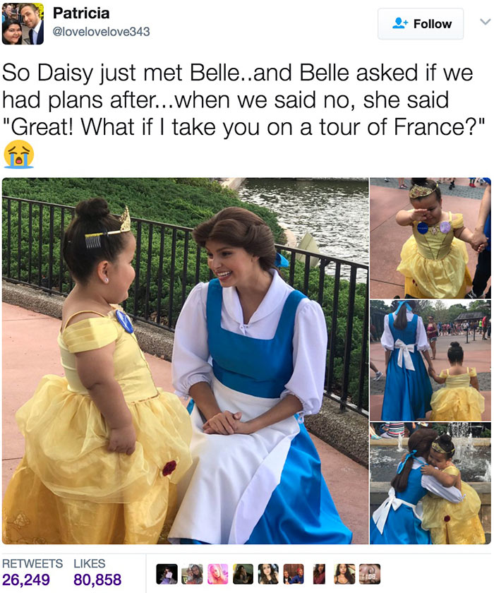在当今的社会风气下,从小肥胖的孩子在童年时会受到无数残忍的攻击,公主之类的美好幻想更是与胖宝宝无缘,但是在佛罗里达的迪斯尼乐园里,却发生了这样感人的一幕。这名名叫Daisy的小姑娘遇到了贝尔公主,两个公主的互动融化了无数网友的心。