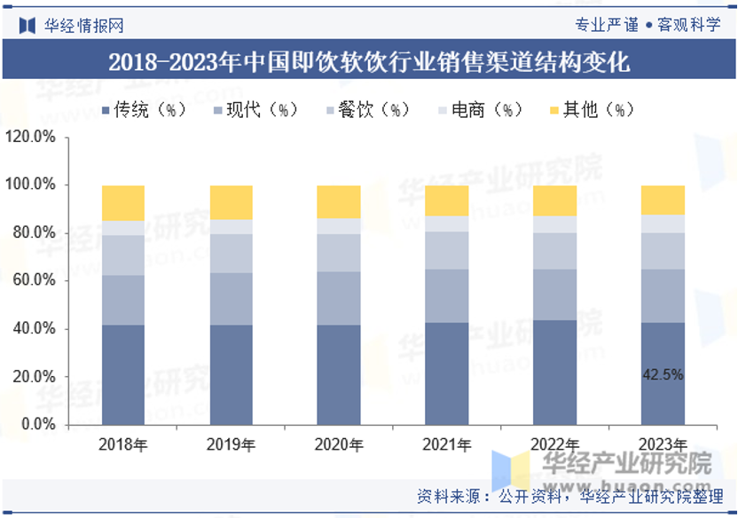另据华经情报网统计,2018年~2023年,中国即饮软饮行业销售渠道仍以传统、现代、餐饮渠道为主,而这些渠道的核心,依然是线下。即便在电商和新零售蓬勃发展的今天,线下渠道依然是软饮产品的主要销售场景。