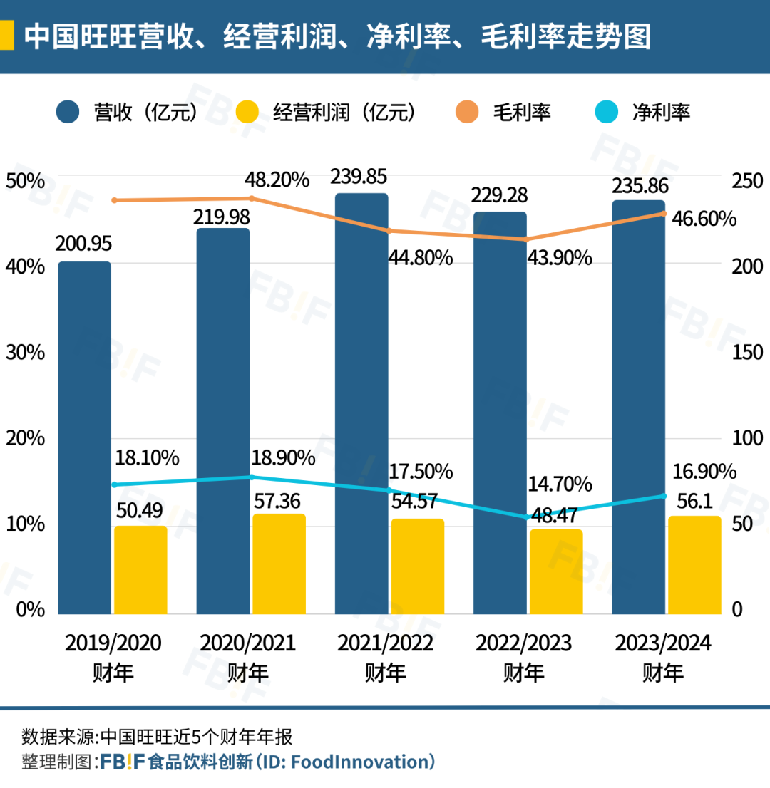 如表9所示,用利润换营收,中国旺旺并没有持续很久,2023/2024财年,营收同比增长的同时,经营利润同样有所增长。