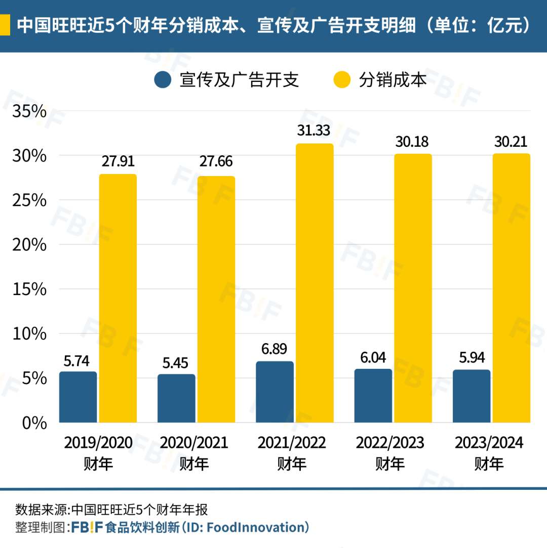 这看似呈现的结果是“增收不增利”,但实际上,除了原物料价格上涨这类被动原因之外,旺旺也在主动“用利润换营收”,如2021/2022财年销售费用同比上涨13.27%,是旺旺近5个财年中支出最多的一年。这说明,旺旺在主动通过营销投入,渠道投入来增加收入。
