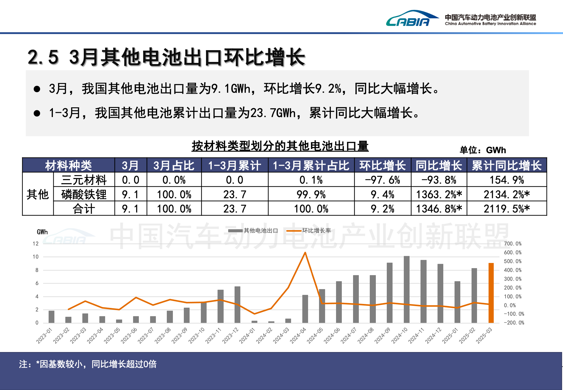 值得注意的是,一季度其他电池的出口量为23.7 GWh,累计同比增长2119.5%,其中99.9%为磷酸铁锂电池。