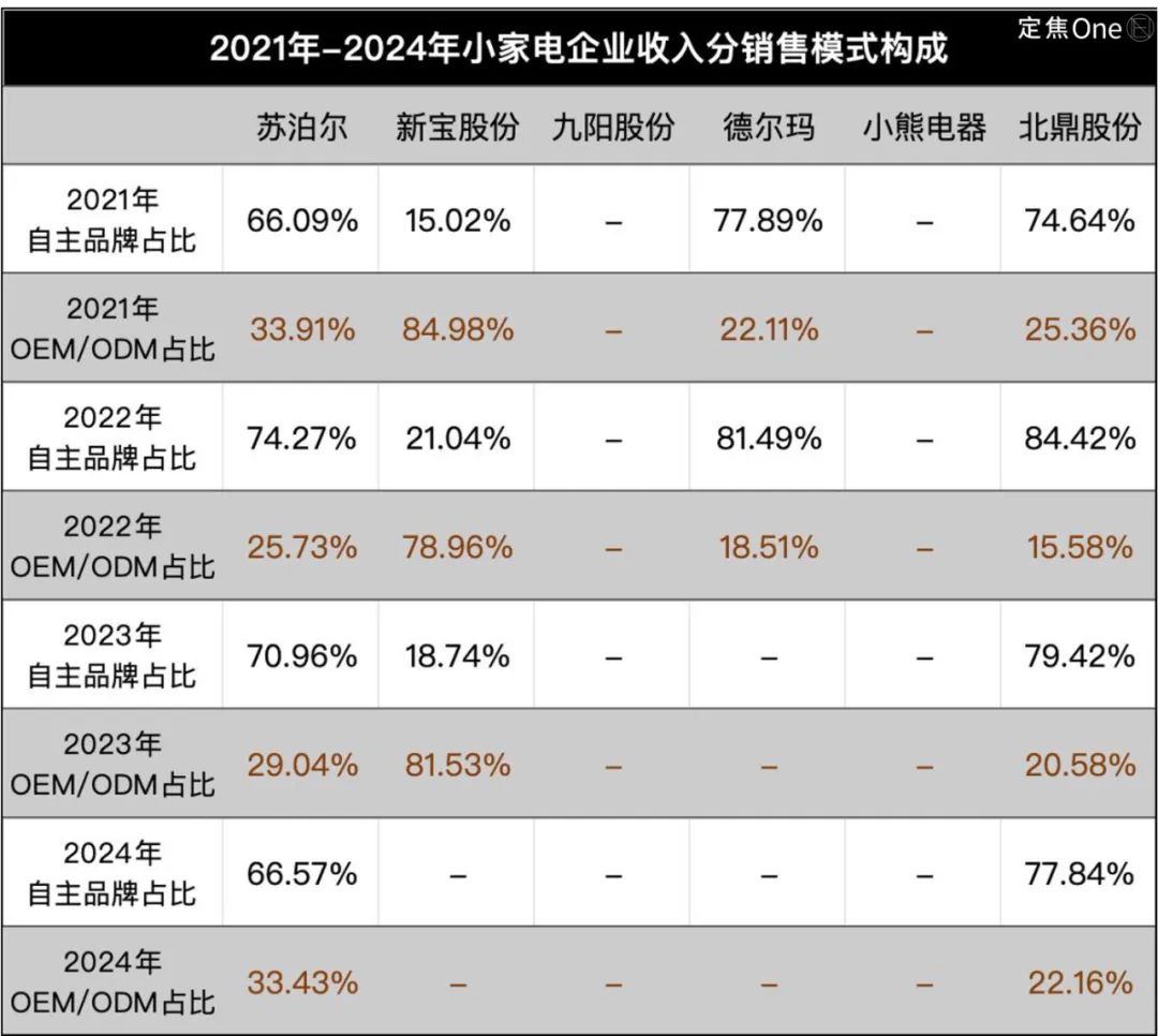 其中OEM/ODM模式的代表是新宝股份,80%的收入来自代工。不过新宝也在发展自主和授权品牌,比如摩飞、咖啡机品牌Barsetto(百胜图)、茶电器品牌鸣盏等。