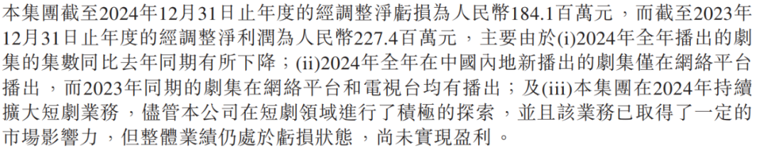 显然,2024年财报中柠萌影视对短剧业务的表述变得更为谨慎,财报明确指出尽管公司在短剧领域进行了积极探索,并且该业务已经取得一定的市场影响力,但整体业绩仍处于亏损状态,尚未实现盈利。不过,由于短剧并未和2023年一样,与长剧并列出现在各项收支明细中,该业务究竟为柠萌影视带来了多少亏损,外界也很难得知。