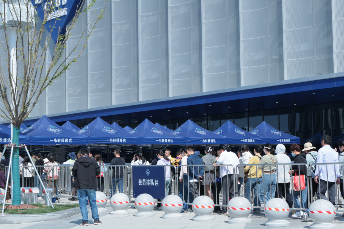 安徽首家山姆超市,合肥山姆会员商店开业人气爆棚!当天上午10点半左右,合肥山姆会员商店外面人流拥挤,需要排队40分钟左右才能进进场。场外还设置会员实名制进场方式,仅限会员才能进入。