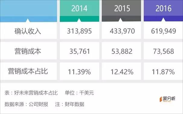 从表中可以看出,营业成本和营销成本占比较高,即使按现金收入来看,仍然有较大幅度的亏损;但2016年亏损幅度已有所下降。