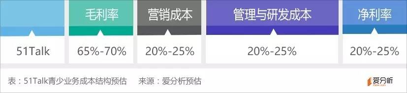 根据之前分析,管理与研发成本约为20%-25%。综合来看,青少业务净利为20%-25%,有较大利润空间。