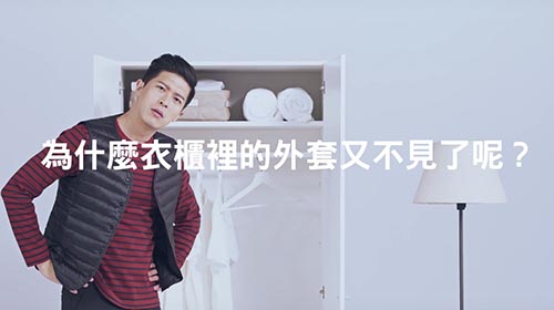另外一则UNIQLO广告,则以《外套不见了》为题:打开衣柜,发现外套都不见了,这才发现是被家人穿去;原来同样一件外套,无论男女老少,穿起来都可以很合适,由此也揭示了品牌产品能抓准大众需求,满足基本穿搭。