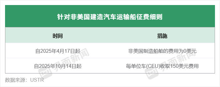 · 为激励美国汽车运输船的建造,针对非美国建造的汽车运输船,按照运力收取费用。