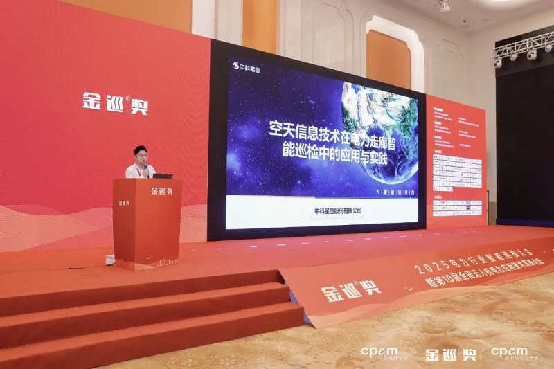 中科星图副总裁、星图地球高级副总裁殷平亮上台领奖,此次获奖标志着双方在空天技术与电力巡检融合领域的创新能力获业界高度认可。
