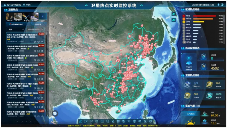 输电走廊山火监测预警:利用卫星遥感进行输电线路山火风险评估,并实现对火点准确和实效的监测,提高重要线路和高风险区段线路运行可靠性。