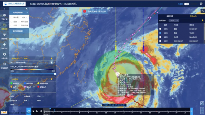 输电走廊台风监测预警:基于国内外海洋多源异构监测数据,采用人工智能、云计算、数值模拟等技术,实现台风位置、范围、强度、运动轨迹等实时监测,提取台风中心、台风路径等定量化信息,同时提供台风变化预报。提前做好应急保障措施,避免出现异物外破、杆塔受损、地线掉线等输电故障。