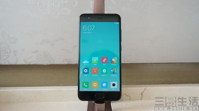 我们拿到的是亮黑色的顶配版(非陶瓷机身),机身正面的无缝指纹模块清晰可见。从设计上看,似乎没有小米5s凹陷那么大,手感上或许会更好一些。