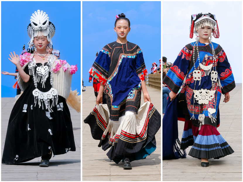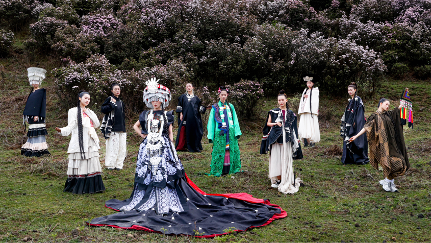 3月份亮相中国国际时装周的彝族儿童化身“杜鹃花使”手持花枝开道。祖孙三代模特同台演绎改良服饰:阿婆身着传统刺绣长袍,孩童穿戴改良裙装,阿妈则展示日常可穿的“新中式”设计,生动诠释“文化在传承中生长”。“我们穿的不是衣服,是祖先留下的山水故事。” “乌蒙村秀”联合创始人、时装设计师阿迪阿思说。