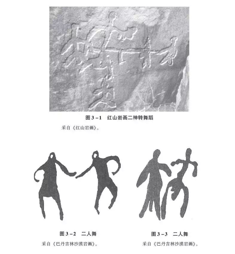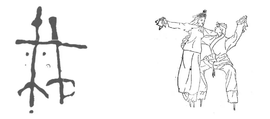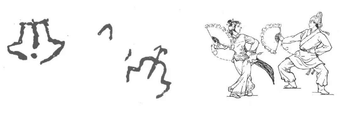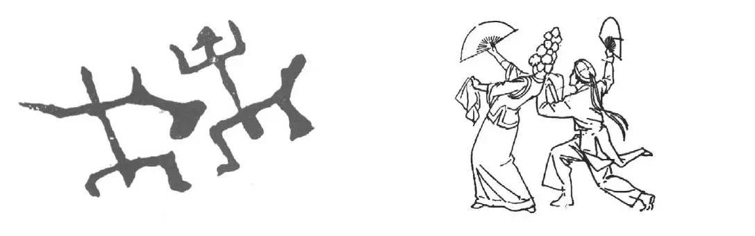 左边的是红山文化及其相近区域的远古岩画,右边的是当代“东北大秧歌”。