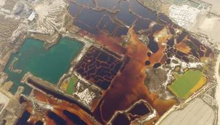 航拍照片显示,渗坑表面的水呈现黑色或者黄褐色,水样pH值仅为1,呈现强酸性,大片被污染的水面给人很强的震撼。这样的污染问题,当地知情吗?