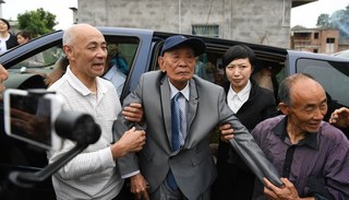 20日,97岁的台湾抗战老兵胡定远重返老家四川泸州,和分离了77年的亲人团聚。