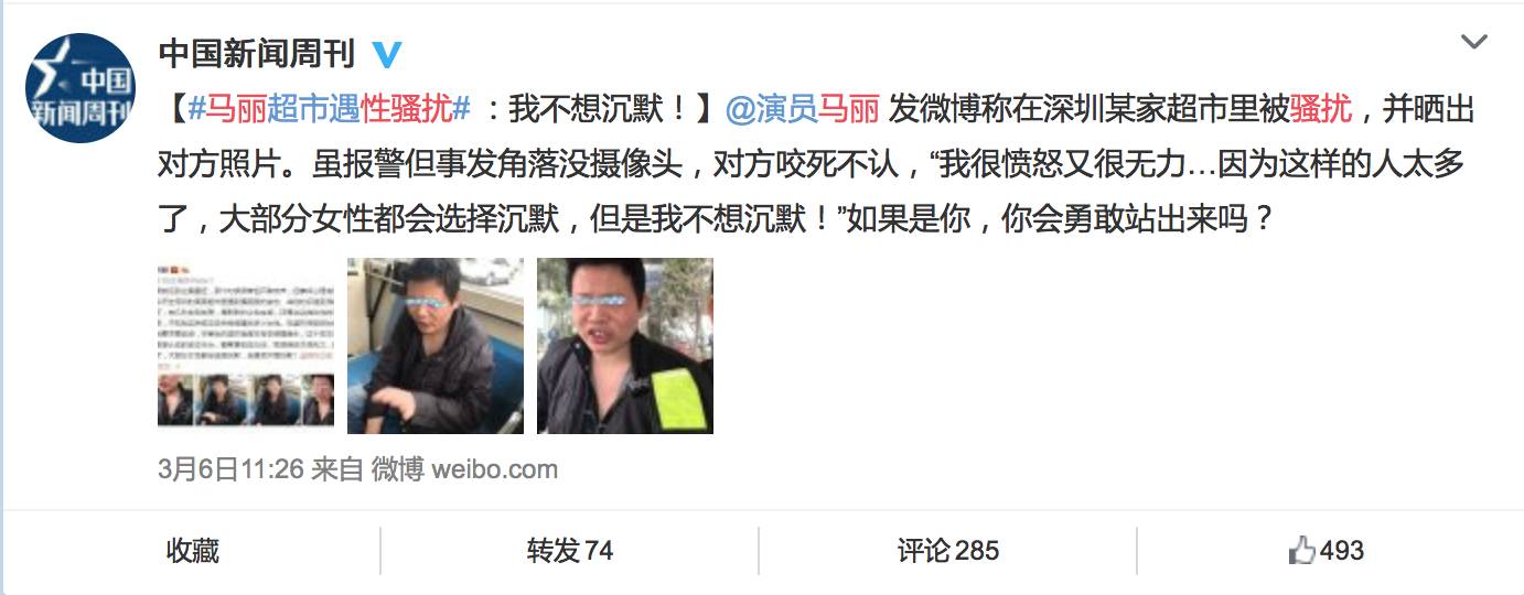 谐星马丽此前曾经在超市被骚扰,并勇敢曝光