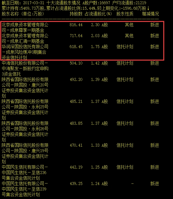 但翻看京汉股份2016年年报及一季度报发现,成泉资本进入时间为2017年一季度。