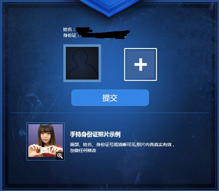 人工认证所需要的内容会比芝麻认证略微复杂,玩家们需要上传本人手持身份证的照片,并且要求面部、姓名和身份证号清晰可见。这种认证方式在直播平台中很常见,比如熊猫直播。