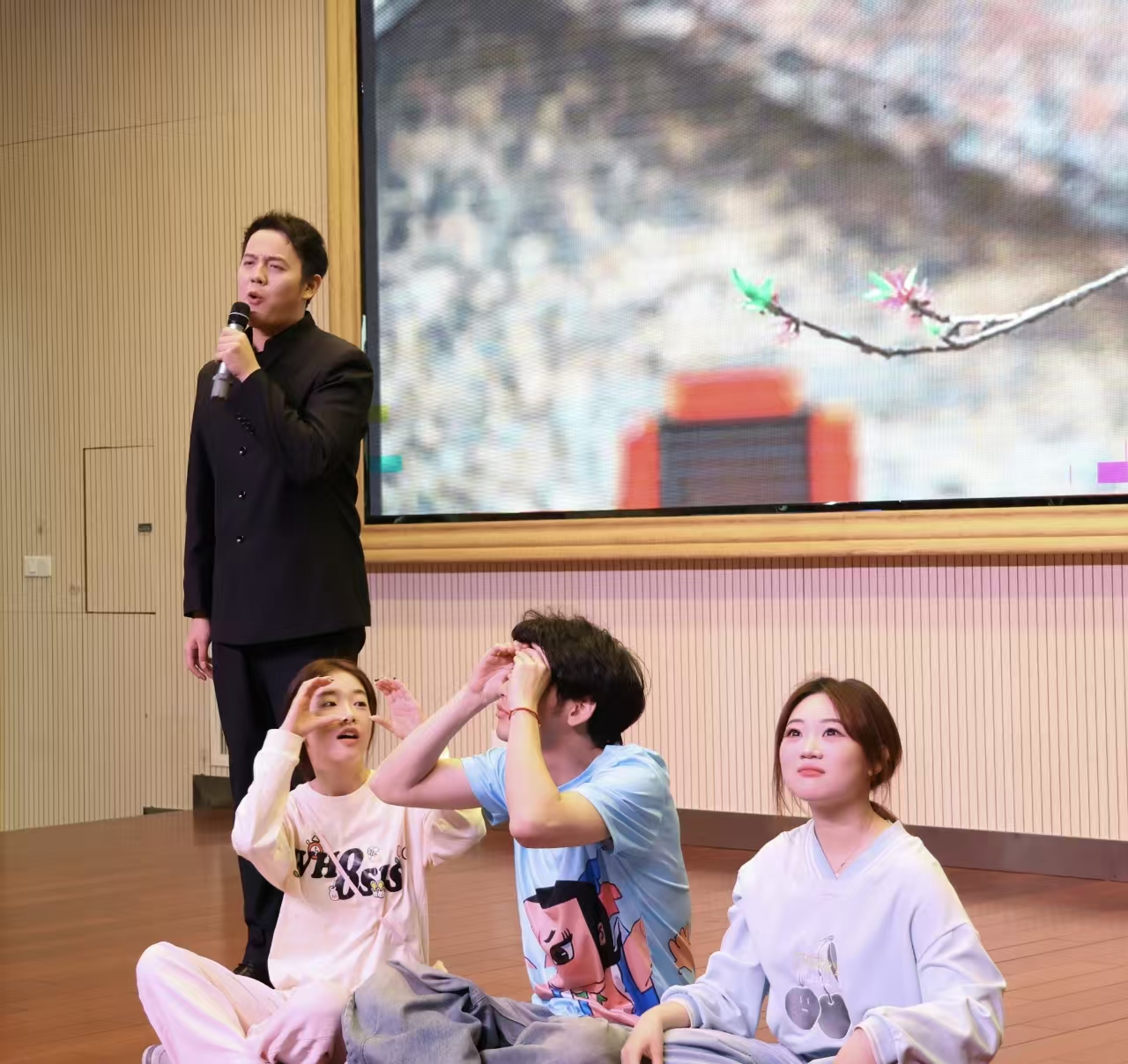 启动仪式上,宁波财经学院象山影视学院的学生们带来了青春宣讲、情景朗诵、音乐剧演出等多元形式的艺术呈现。这些高校艺术赋能思政实践教育创新成果,让观众在思想与情感的激荡中沉浸式体验教育的深度与厚度。从《乡关何处》的深情咏怀,到“鱼拓”故事中非遗与红色精神的交汇;从《帅小伙蔬果店》的青春活力,再到《山海之间的双赢密码》中生态理念的生动讲述,一幅幅意象鲜活、情感真挚的思政图景在现场徐徐展开。