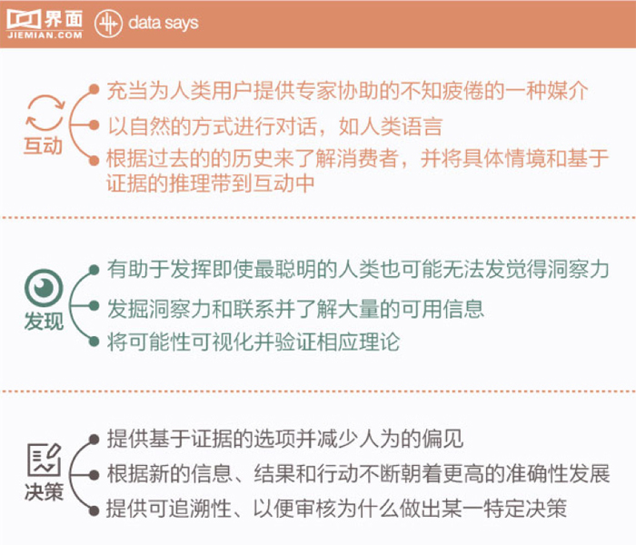 事实上,行业领先者已经先行一步看到商机,将具有认知计算功能的人工智能引入到了金融体系中。这些聪明的银行业高管相信认知计算将在三个能力领域展示它的威力。