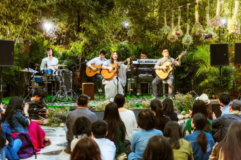 平常的时间,山谷的家也会举办一些沙龙活动,譬如观影会和创意集市。乐队今晚举办的“悠春小叙”北展剧场专场演出,不久前也在这里举办了发布会。
