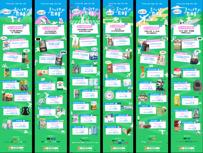 本次活动中,淘宝天猫宠物联合皇家、网易严选、冠能、福来恩、爱肯拿、诚实一口等多个宠物头部品牌,结合六大户外出行场景推出趋势购物清单,将宠物人气好物一站式带到消费者面前。