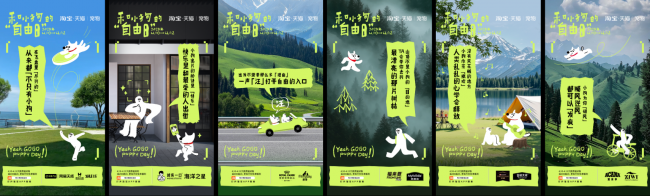 正因如此,淘宝天猫宠物联合皇家、网易严选、冠能、福来恩、爱肯拿、诚实一口、麦富迪、伯纳天纯、疯狂小狗、比乐、海洋之星、ZIWI、佩蒂13个宠物大牌,在4月10日至4月12日开启【和小狗的自由日】活动,探索宠物品类新趋势,共创 citywalk、露营、徒步、骑行、运动、旅行六大狗狗自由撒欢场景,将宠物趋势与此轻巧结合,实现场景化共鸣。