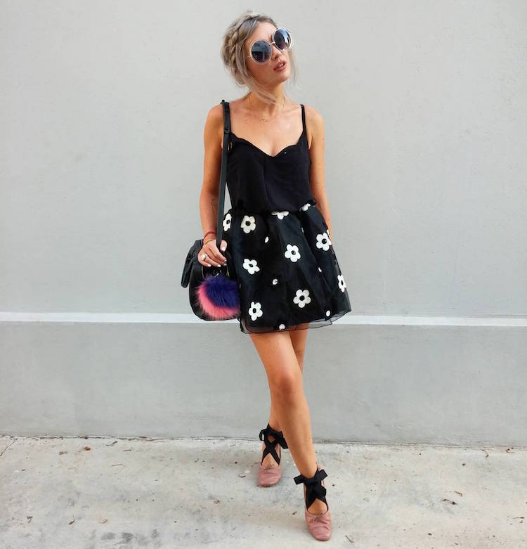 还可以像博主Leandra Medine一样提前购入平底凉鞋搭配大印花裙装十分活力青春。