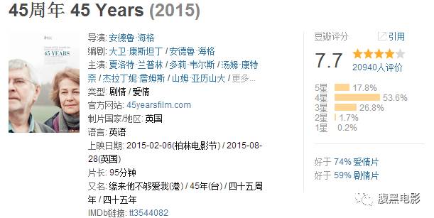 说起婚姻这个说严重不严重,说不严重又很严重的事情捏,还真是说不尽道不完。尤其是像史某人这种还没有亲身经历过婚姻的渣渣,更是没有资格去对婚姻的事情评头论足。正因为婚姻的形态具有多样性,所以一直以来,各个国家拍出了很多风格迥异的有关婚姻和家庭的片子。比如说《消失的爱人》、《万箭穿心》、《回忆》、《家族之苦》都具有不同的代表性。今天,在来说一部和这些片子风格也不一样的片子——《45周年》