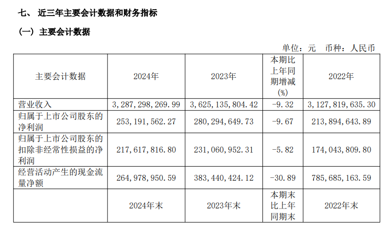 财报数据显示,2024年营收32.87亿元,同比下降9.32%;归母净利润2.53亿元,同比下降9.67%。到今年一季度,香飘飘仍未止住颓势,并出现亏损;一季度营业收入同比下降19.98%为5.8亿元,归母净利润亏损1877.5万元,上年同期净利润2521.26万元。