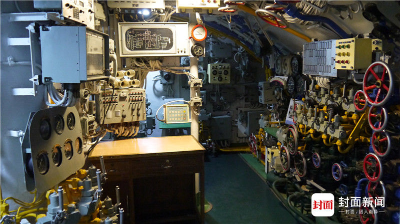 看完鱼雷舱,弯身穿过一个圆形舱门进入指挥舱,这里是全艇的“中枢神经”,舰长室、机要室等都在这一舱,控制潜艇的深度、发布指令都在这一层。