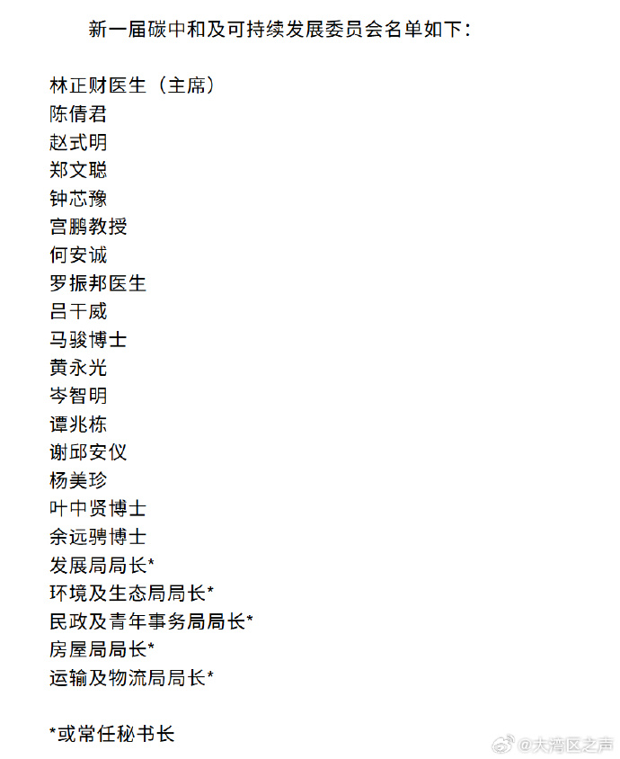 香港特区政府今日(29日)宣布,行政长官李家超已委任新一届碳中和及可持续发展委员会委员,任期两年,由2025年5月1日开始。