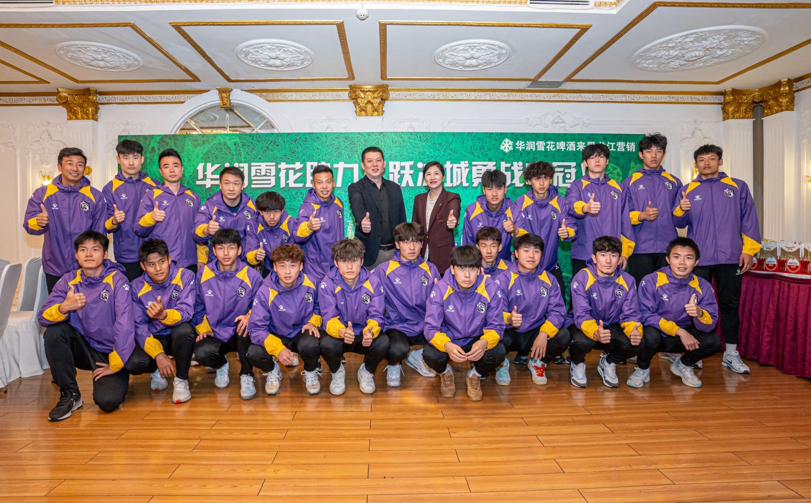 4月29日,“凝心聚力·共筑龙江足球新未来”黑龙江龙跃冰城足球俱乐部征战2025中冠联赛出征仪式在马迭尔宾馆举行,省市体育局领导、省足协秘书长、黑龙江龙跃冰城足球俱乐部主要负责人杨潇、主教练王刚、全体队员以及部分球迷代表出席。