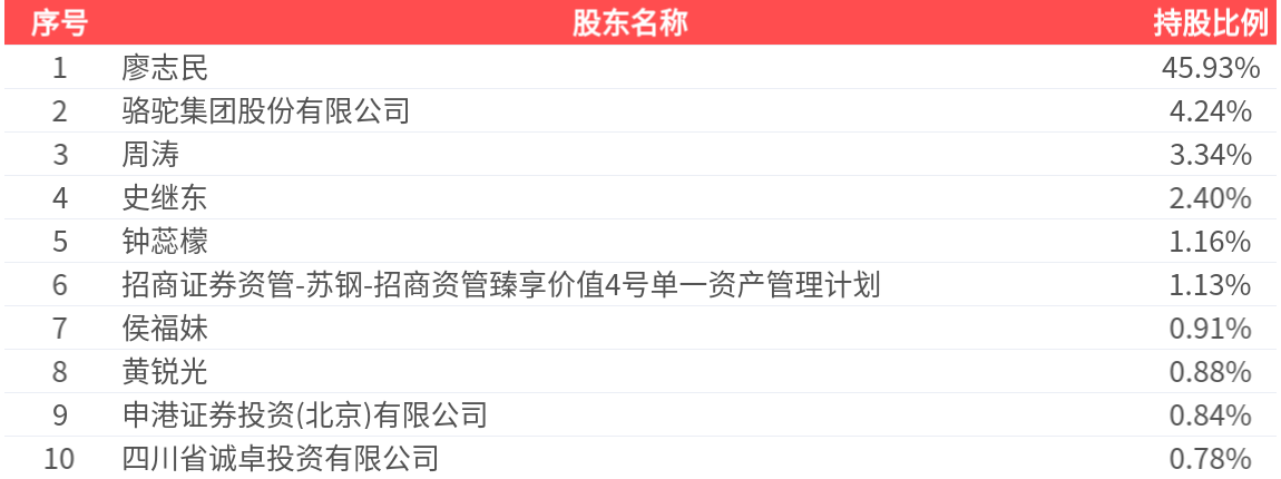 公司股东户数为1.15万户,前十大股东持股数量为1.70亿股,占总股本比例为61.63%,前十大股东持股情况如下: