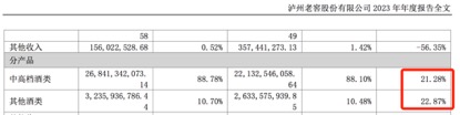 公司将主营产品分为中高档酒类和其他酒类,中高档酒类指含税销售价格≥150元/瓶的产品,主要包括国窖1573、泸州老窖特曲、百年泸州老窖窖龄酒;其他酒类含税销售价格在150元/瓶以下,主要包括泸州老窖头曲、黑盖。