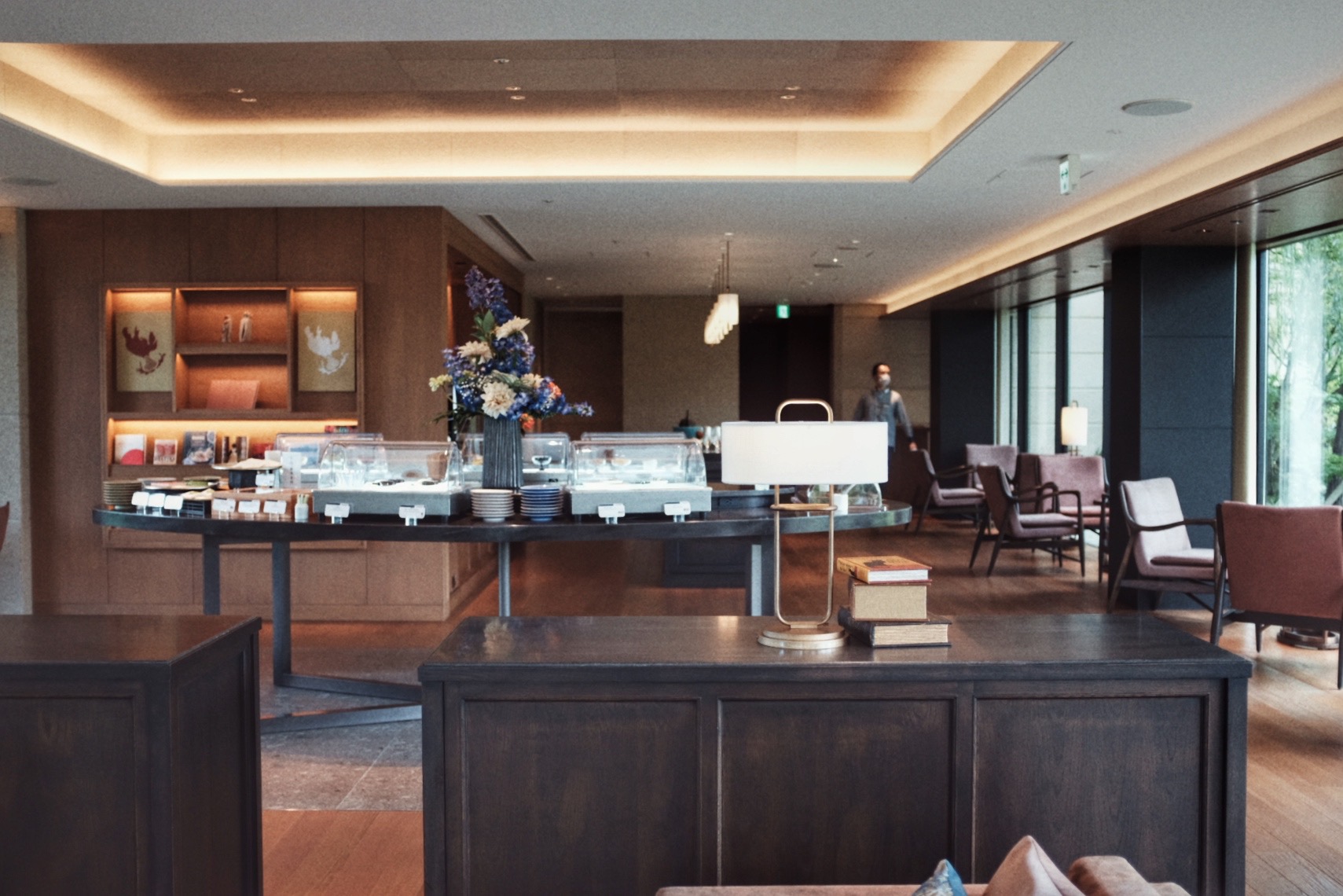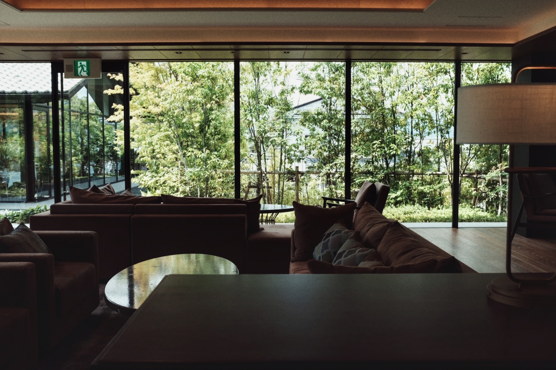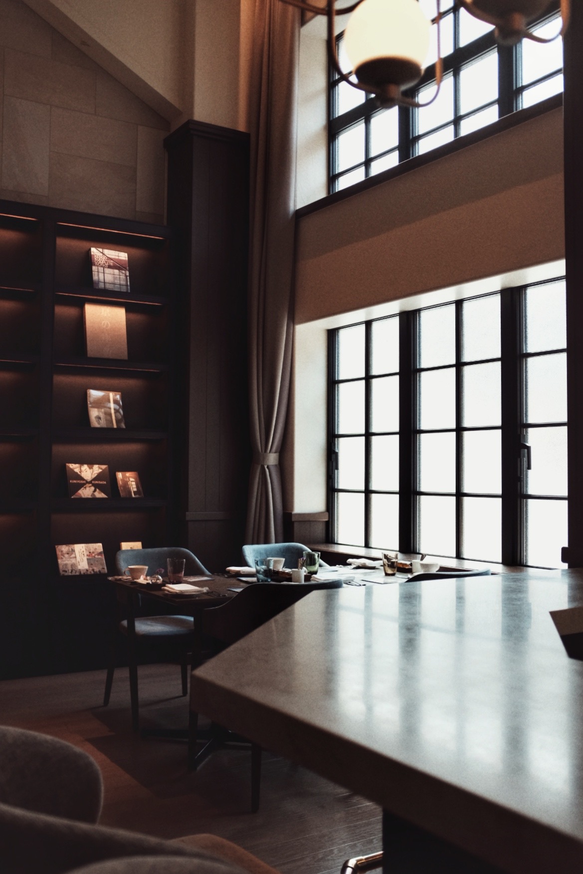 门童从入口处就迅速而安静地引导入内,年纪稍长的大堂经理送上热毛巾和清茶,再用日英双语缓缓介绍着酒店的布局。她说:“从这里过去可以预约汤池,那边是全天开放的酒廊。”语气不疾不徐,没有太多训练痕迹,反倒让人觉得这是生活常态的一部分。