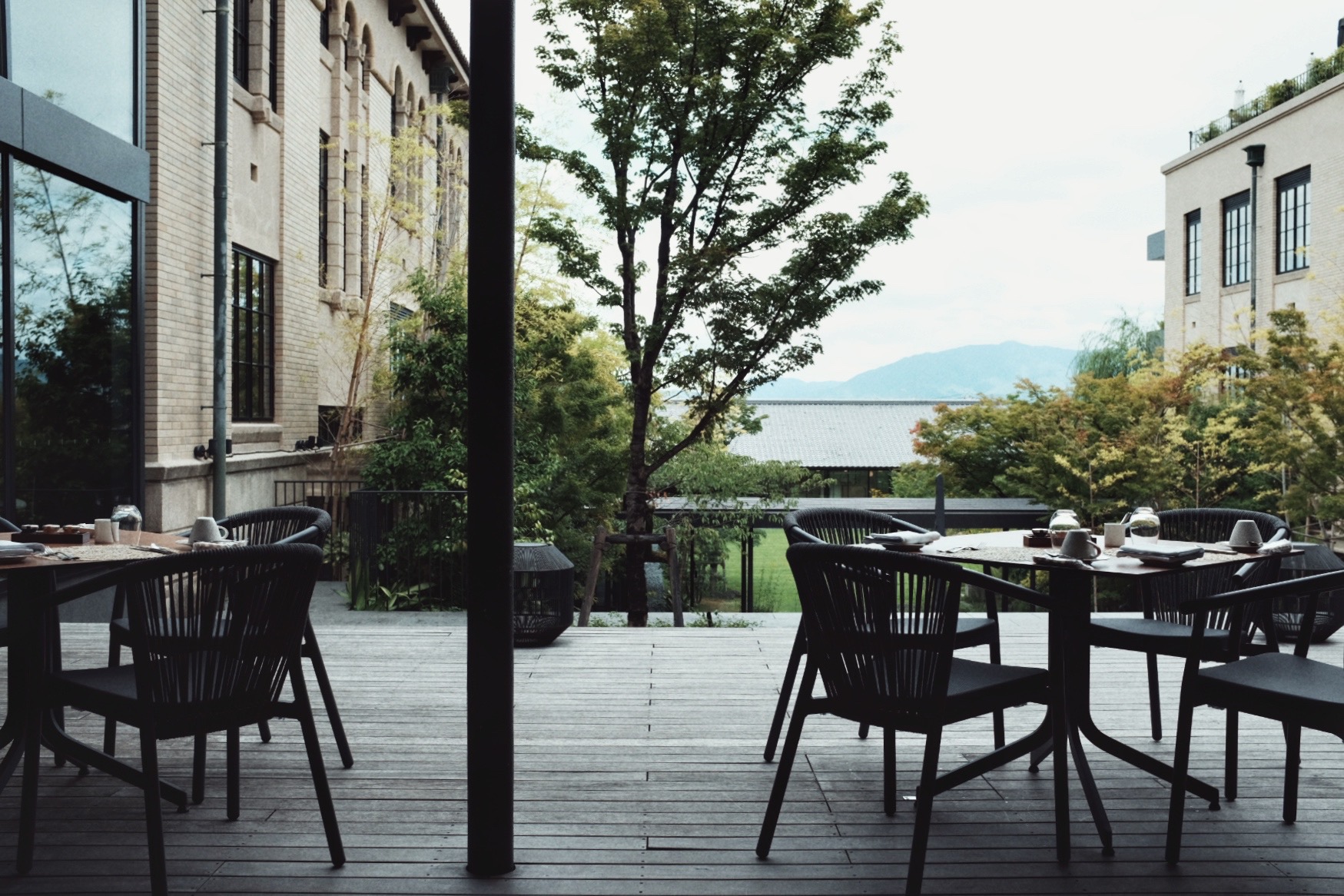 早餐结束后,服务员特意为我展示了餐厅空间在改造前的照片——那曾是学校时期的礼堂,原本的舞台区也被改成了如今布满图书的书架。看着照片里的旧场景再回望眼前,确实令人难以想象这是同一个空间。这种来自空间记忆的穿越感,是清水青龙最动人的部分之一。