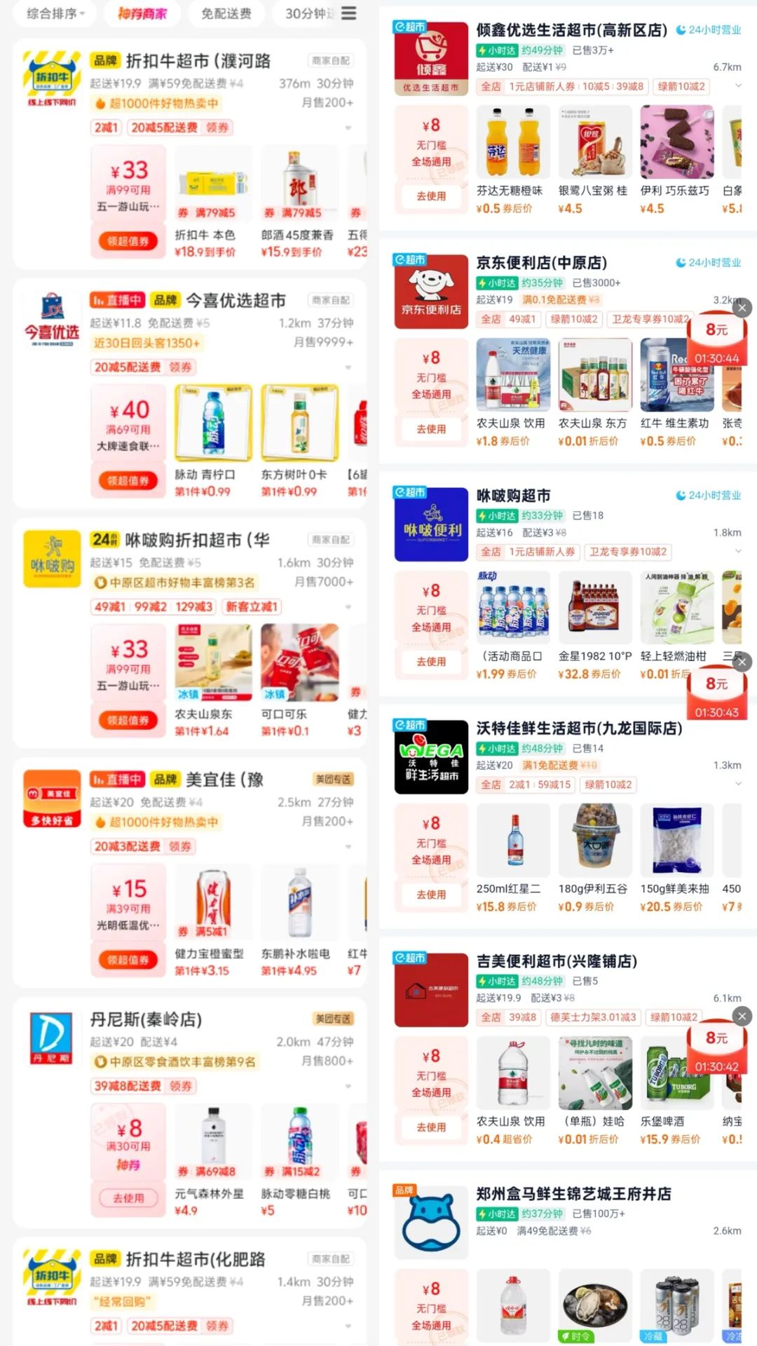 (左为美团闪购,右为淘宝小时达)