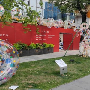 其中,《贝果浮光》将平凡泳圈变为市民共创画布,使露天草坪化身流动美术馆;《波点异想世界》则将波点艺术与工程技术融合,让数百颗高饱和度波点球体跃上枝头,使自然场域成为会呼吸的艺术生命体。